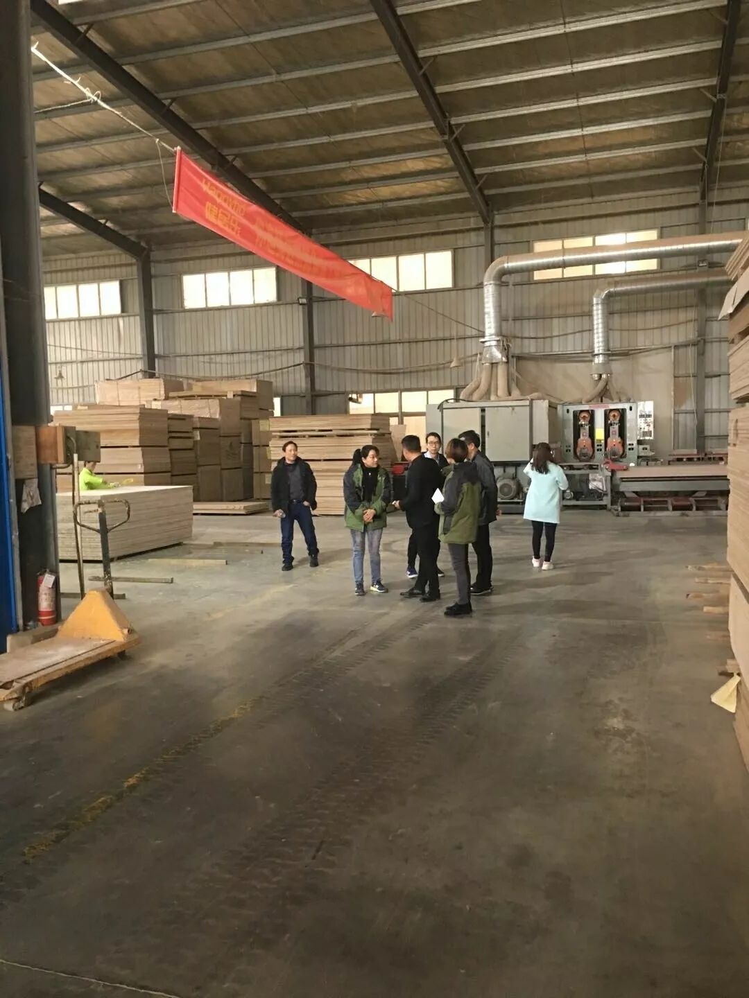 健居乐公司董事长黄总代表公司对顾家各部门领导的到来表示热烈欢迎,并安排了细致的接待工作。在黄总的陪同下,顾家各部门领导参观考察了公司生产车间(压板车间、涂层车间、产品检测实验室)。