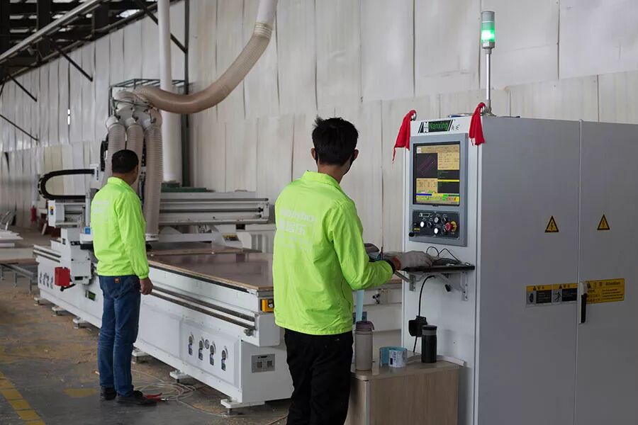 健居乐全屋定制家居裁板雕刻作业中