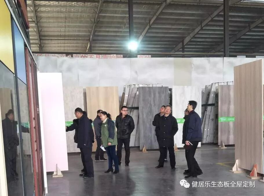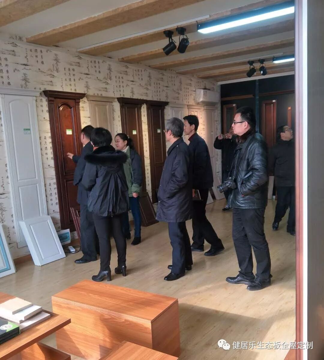 领导们参观了健居乐全屋定制板材展示,对于健居乐全屋定制板材上的二维码进行微信扫描,即刻出720°效果图。这种讲述与情景相结合的方式表现了浓厚的兴趣。对健居乐生产工艺水平和产品质量有了充分的了解,并给予了充分的肯定。
